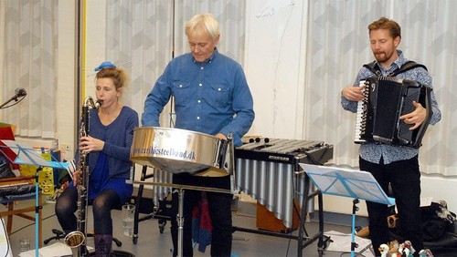Torsdag d. 23. oktober kl. 19.00 er der koncert med strikkeensemblet, en koncert med fortælling og dejlig musik, hvor det er tilladt at sidde med sit håndarbejde, mens man lytter. Ensemblet består af J. Vinther Petersen, harmonika, Kai Steensgaard, vibrafon og percussion og Tine K. Skau, fløjte og basklarinet.